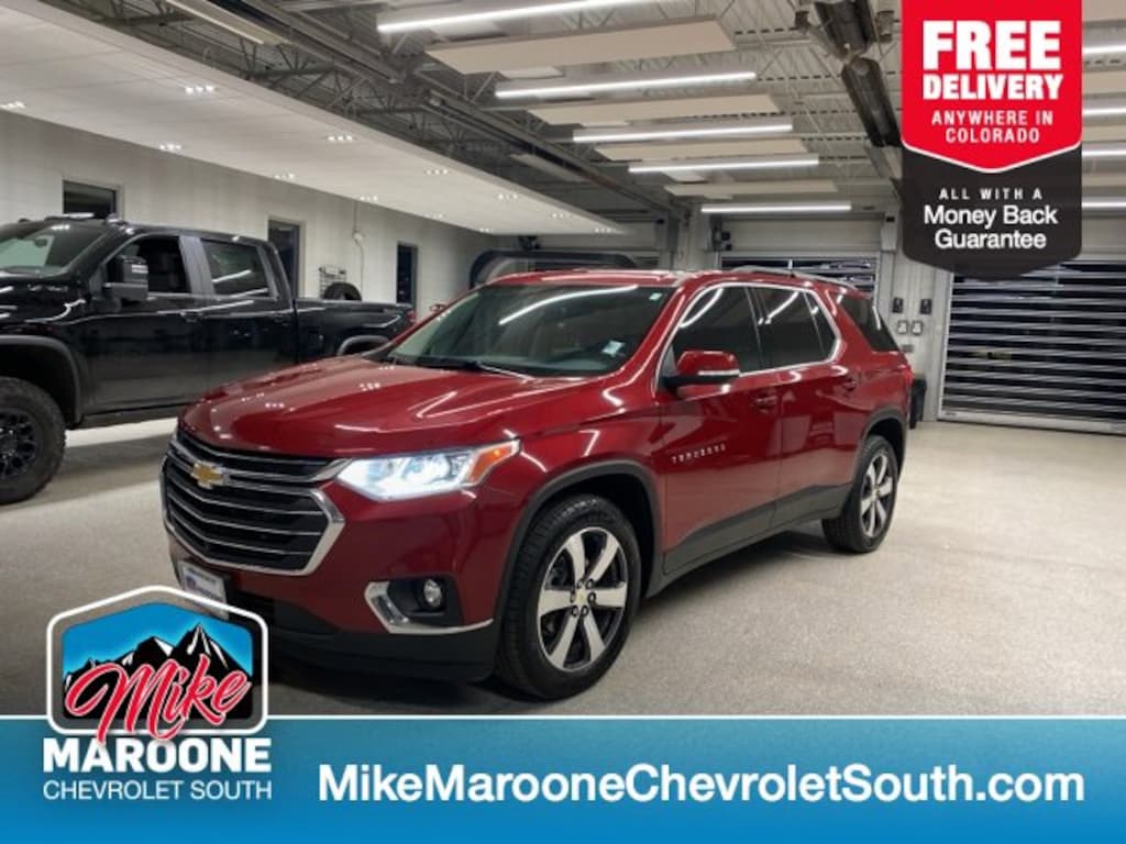 COME SEE THIS BEAUTIFUL 2021 Chevrolet Traverse LT Leather AT MIKE MAROONE CHEVROLET SOUTH 230 N ACADEMY BLVD COLORADO SPRINGS CO, 3 DAY 150 MILE MONEY BACK GUARANTEE**, FREE DELIVERY ANYWHERE IN COLORADO**, 60 DAY POWERTRAIN WARRANTY**, CLEAN CARFAX - NO ACCIDENTS REPORTED**, 1 FREE MONTH ONSTAR (IF EQUIPPED)**, 3 FREE MONTHS XM RADIO (IF EQUIPPED)**, 3RD ROW SEATING**, 8 COLOR TOUCHSCREEN**, APPLE CARPLAY**, ANDROID AUTO**, AIR CONDITIONING**, ALL WHEEL DRIVE**, ALLOY WHEELS**, BLUETOOTH - HANDS FREE**, FRESH OIL & FILTER CHANGE**, FRONT & REAR BRAKES**, HEATED SEATS**, LEATHER SEATS**, PASSIVE ENTRY SYSTEM**, KEYLESS OPEN**, KEYLESS START**, KEYLESS ENTRY**, POWER HEATED OUTSIDE MIRRORS**, CRUISE CONTROL**, POWER WINDOWS**, POWER LOCKS**, POWER REAR LIFTGATE**, POWER SEAT**, REAR BACK UP CAMERA**, REAR CROSS TRAFFIC ALERT**, REMOTE VEHICLE START**, SERVICE RECORDS AVAILABLE**, STEERING WHEEL AUDIO CONTROLS**. AWD Chevrolet Certified Pre-Owned Details: