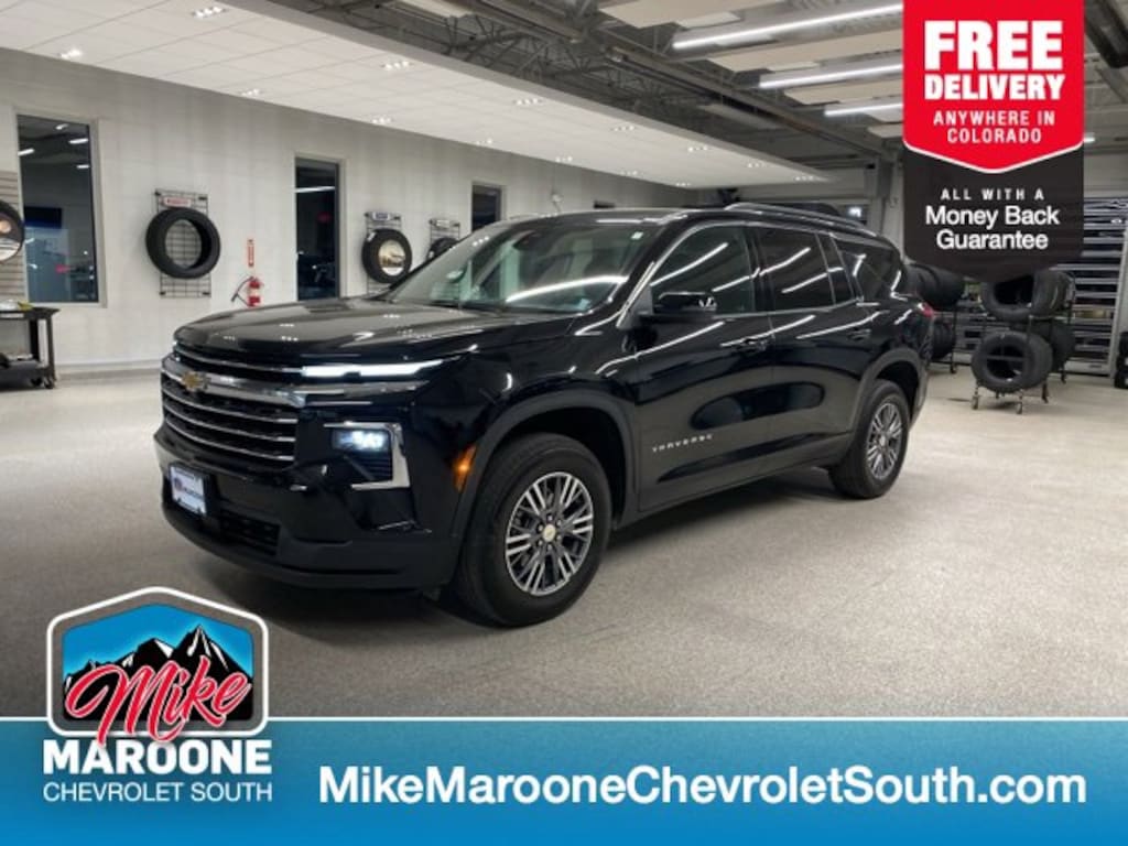 COME SEE THIS BEAUTIFUL 2025 Chevrolet Traverse LT 2LT AT MIKE MAROONE CHEVROLET SOUTH 230 N ACADEMY BLVD COLORADO SPRINGS CO, 3 DAY 150 MILE MONEY BACK GUARANTEE**, FREE DELIVERY ANYWHERE IN COLORADO**, 60 DAY POWERTRAIN WARRANTY**, CERTIFIED 1 OWNER VEHICLE**, **CHEVROLET CERTIFIED**, 100,000 MILE WARRANTY**, 172 POINT CHEVROLET CERTIFIED INSPECTION**, REMAINDER OF FACTORY WARRANTY**, 1 FREE MONTH ONSTAR (IF EQUIPPED)**, 3 FREE MONTHS XM RADIO (IF EQUIPPED)**, 3RD ROW SEATING**, 8 COLOR TOUCHSCREEN**, APPLE CARPLAY**, ANDROID AUTO**, AIR CONDITIONING**, ALLOY WHEELS**, BLUETOOTH - HANDS FREE**, FRESH OIL & FILTER CHANGE**, FRONT & REAR BRAKES**, HEATED SEATS**, HEATED STEERING WHEEL**, LEATHER SEATS**, PASSIVE ENTRY SYSTEM**, KEYLESS OPEN**, KEYLESS START**, KEYLESS ENTRY**, POWER HEATED OUTSIDE MIRRORS**, CRUISE CONTROL**, POWER WINDOWS**, POWER LOCKS**, POWER SEAT**, REAR BACK UP CAMERA**, REAR CROSS TRAFFIC ALERT**, REMOTE VEHICLE START**, SERVICE RECORDS AVAILABLE**, STEERING WHEEL AUDIO CONTROLS**. AWD Chevrolet Certified Pre-Owned Details: