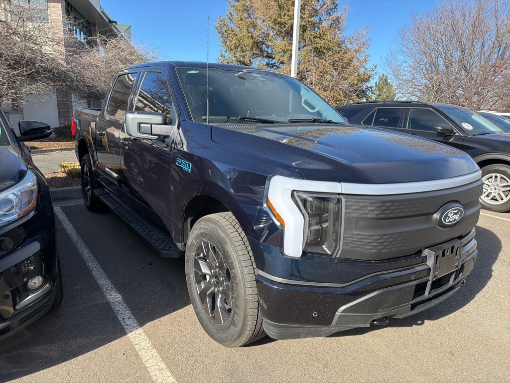 Recent Arrival at Mike Maroone Ford! CARFAX One-Owner. Model: 2025 F-150 Lightning 4x4 SuperCrew Wheelbase: 145" Battery: 123kWh Extended Range (Single Charger) Transmission: Single-Speed Exterior Color: Antimatter Blue Metallic Interior: Slate ActiveX Trimmed, EXTERIOR Box Lighting LED Door Handles Body Color Headlamps Auto High Beam Headlamps Autolamp (On/Off) LED Projector w/ Dynamic Bending Headlamps Locking Removable Tailgate with Tailgate Assist Mega Power Frunk Mirrors Heated, Power Glass / Manual Fold / Turn Signals Pickup Box Tie-Down Hooks Power Up/Down Front Hood, INTERIOR 10-Way Power Driver & Multi-Adjust Power Front Passenger Seats 12" Digital Instrument Cluster 1-Touch Up/Down Driver & Passenger Windows 60/40 Fold-Up Rear Bench A/C with Dual-Zone Climate Control ActiveX Wrapped Steering Wheel Auto-Dim Rearview Mirror Heated Steering Wheel Illuminated Entry Message Center (Outside Temp, Compass, Trip Computer) Power-Adjustable Pedals PowerPoint 2 Ã 120V Rear-Window Defroster, FUNCTIONAL 360-Degree Camera Adaptive Cruise Control B&O Sound System with 8 Speakers BLIS with Cross-Traffic Alert Class IV Trailer Hitch Evasive Steering Assist FordPass Connect Forward Sensing System Intelli Access with Push-Button Start Lane-Keeping System Pre-Collision Assist with Automatic Emergency Braking SYNC 4A with Enhanced Voice Recognition & 15.5" Touchscreen Tow Technology Package Wireless Apple CarPlay & Android Auto, SAFETY / SECURITY AdvanceTrac with Roll Stability Control (RSC) Airbags Front Seat Mounted Side Impact Airbags Safety Canopy LED Center High-Mounted Stop Lamp Perimeter Alarm SOS Post-Crash Alert System, OPTIONAL EQUIPMENT / OTHER 20" Alloy Dark Carbonized Gray Wheels Zero Emissions Vehicle 275/60R20 BSW All-Season Tires 8550# GVWR Package Front License Plate Bracket No Charge BlueCruise Equipped (90-Day Trial) Max Trailer Tow Package $1,100 Electric Drive E-Lock Rear Axle Integrated Trailer Brake Controller Mobile Power Cord (120V / 240V) $600. Blue Metallic 2025 Ford F-150 Lightning Flash 4D Crew Cab Electric Motor Single-Speed Automatic AWD
