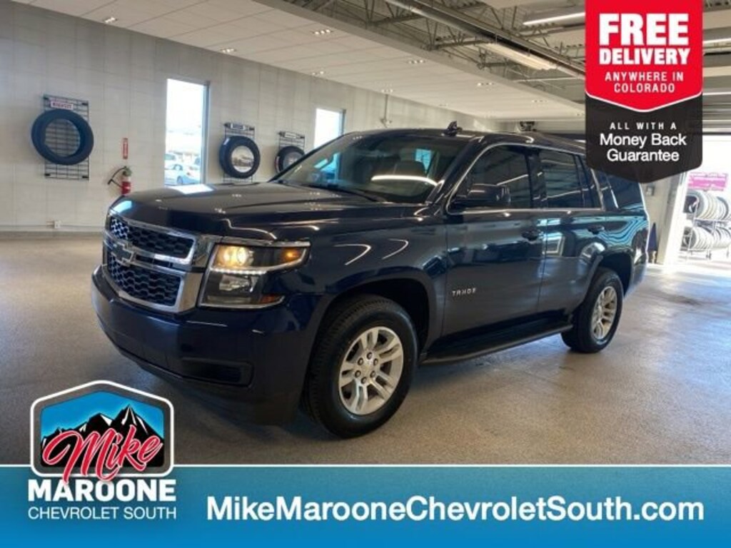 COME SEE THIS BEAUTIFUL 2018 Chevrolet Tahoe AT MIKE MAROONE CHEVROLET SOUTH 230 N ACADEMY BLVD COLORADO SPRINGS CO, 3 DAY 150 MILE MONEY BACK GUARANTEE**, FREE DELIVERY ANYWHERE IN COLORADO**, 60 DAY POWERTRAIN WARRANTY**, 1 FREE MONTH ONSTAR (IF EQUIPPED)**, 3 FREE MONTHS XM RADIO (IF EQUIPPED)**, 3RD ROW SEATING**, 4 WHEEL DRIVE**, 5.3L V8 ENGINE**, CHEVROLET MYLINK**, AIR CONDITIONING**, ALLOY WHEELS**, BLUETOOTH - HANDS FREE**, POWER ADJUSTABLE PEDALS**, CRUISE CONTROL**, POWER WINDOWS**, POWER LOCKS**, POWER SEAT**, REAR BACK UP CAMERA**, TOW PACKAGE**, TRAILERING EQUIPMENT**. 4WD Certification Program Details: This 2018 Chevrolet Tahoe also comes with the FULL Mike Maroone 60-Day warranty. We will review the technician's vehicle inspection report with you before purchase. Our intention is to provide you a completely transparent buying experience. At Mike Maroone our used vehicles are Safety Checked, Warrantied, CARFAX, and if you don't like it ... Bring it back! All of our new and used vehicles come with the Mike Maroone Preferred Owner Advantages listed below: - MARKET BASED PRICING - 3 DAY/150 MILE MONEY BACK GUARANTEE - FREE LOANERS FOR SERVICE GUESTS WHO SET AN ONLINE APPOINTMENT - 12 MONTH/12K MILE SERVICE/COLLISION GUARANTEE - 60 DAY LIMITED POWERTRAIN PRE-OWNED VEHICLE WARRANTY - MILITARY DEPLOYMENT BUYBACK GUARANTEE - FREE DELIVERY ANYWHERE IN COLORADO For more information or vehicles like it, stop by Mike Maroone South today. We are just south of the Citadel Mall on the corner of Academy and Bijou.
