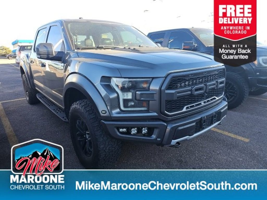 COME SEE THIS BEAUTIFUL 2017 Ford F-150 Raptor AT MIKE MAROONE CHEVROLET SOUTH 230 N ACADEMY BLVD COLORADO SPRINGS CO, 3 DAY 150 MILE MONEY BACK GUARANTEE**, FREE DELIVERY ANYWHERE IN COLORADO**, 60 DAY POWERTRAIN WARRANTY**, CLEAN CARFAX - NO ACCIDENTS REPORTED**, 3 FREE MONTHS XM RADIO (IF EQUIPPED)**, 4 WHEEL DRIVE**, 8 COLOR TOUCHSCREEN**, APPLE CARPLAY**, ANDROID AUTO**, AIR CONDITIONING**, ALLOY WHEELS**, AUTO LOCKING REAR DIFFERENTIAL**, BLIND SPOT MONITOR**, BLUETOOTH - HANDS FREE**, FRESH OIL & FILTER CHANGE**, FRONT & REAR BRAKES**, FRONT AND REAR PARK ASSIST**, HEATED 2ND ROW SEATS**, HEATED SEATS**, HEATED STEERING WHEEL**, LANE CHANGE ALERT WITH SIDE BLIND ZONE ALERT**, LANE KEEP ASSIST**, LEATHER SEATS**, MEMORY SEATS**, PASSIVE ENTRY SYSTEM**, KEYLESS OPEN**, KEYLESS START**, KEYLESS ENTRY**, POWER SUNROOF**, POWER HEATED OUTSIDE MIRRORS**, CRUISE CONTROL**, POWER WINDOWS**, POWER LOCKS**, POWER SEAT**, REAR BACK UP CAMERA**, REAR CROSS TRAFFIC ALERT**, REMOTE VEHICLE START**, RUNNING BOARDS**, SERVICE RECORDS AVAILABLE**, STEERING WHEEL AUDIO CONTROLS**, TOW PACKAGE**, TRAILERING EQUIPMENT**, WIRELESS CHARGING**. 4WD Certification Program Details: This 2017 Ford F-150 Raptor also comes with the FULL Mike Maroone 60-Day warranty. We will review the technician's vehicle inspection report with you before purchase. Our intention is to provide you a completely transparent buying experience. At Mike Maroone our used vehicles are Safety Checked, Warrantied, CARFAX, and if you don't like it ... Bring it back! All of our new and used vehicles come with the Mike Maroone Preferred Owner Advantages listed below: - MARKET BASED PRICING - 3 DAY/150 MILE MONEY BACK GUARANTEE - FREE LOANERS FOR SERVICE GUESTS WHO SET AN ONLINE APPOINTMENT - 12 MONTH/12K MILE SERVICE/COLLISION GUARANTEE - 60 DAY LIMITED POWERTRAIN PRE-OWNED VEHICLE WARRANTY - MILITARY DEPLOYMENT BUYBACK GUARANTEE - FREE DELIVERY ANYWHERE IN COLORADO For more information or vehicles like it, stop by Mike Maroone South today. We are just south of the Citadel Mall on the corner of Academy and Bijou. Odometer is 3608 miles below market average!