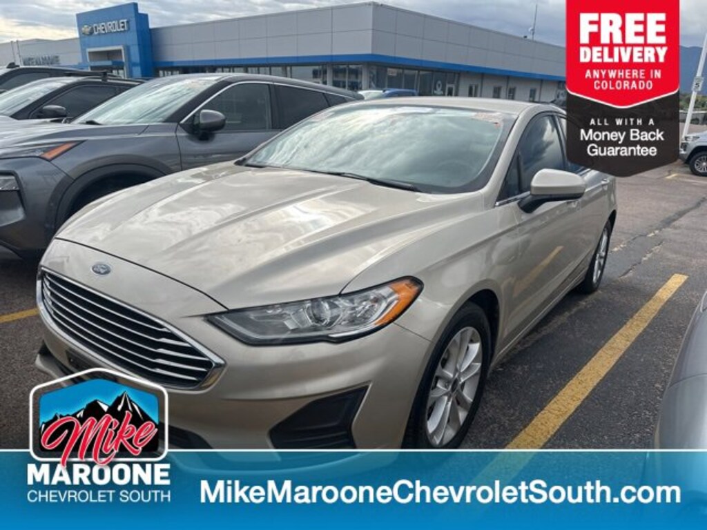 COME SEE THIS BEAUTIFUL 2019 Ford Fusion SE AT MIKE MAROONE CHEVROLET SOUTH 230 N ACADEMY BLVD COLORADO SPRINGS CO, 3 DAY 150 MILE MONEY BACK GUARANTEE**, FREE DELIVERY ANYWHERE IN COLORADO**, 60 DAY POWERTRAIN WARRANTY**, CLEAN CARFAX - NO ACCIDENTS REPORTED**, 8 COLOR TOUCHSCREEN**, APPLE CARPLAY**, ANDROID AUTO**, AIR CONDITIONING**, BLUETOOTH - HANDS FREE**, FRESH OIL & FILTER CHANGE**, MP3- USB- AUX PORT**, PASSIVE ENTRY SYSTEM**, KEYLESS OPEN**, KEYLESS START**, KEYLESS ENTRY**, CRUISE CONTROL**, POWER WINDOWS**, REAR BACK UP CAMERA**, SERVICE RECORDS AVAILABLE**, STEERING WHEEL AUDIO CONTROLS**, 2.5L iVCT ENGINE**. FWD Certification Program Details: This 2019 Ford Fusion SE also comes with the FULL Mike Maroone 60-Day warranty. We will review the technician's vehicle inspection report with you before purchase. Our intention is to provide you a completely transparent buying experience. At Mike Maroone our used vehicles are Safety Checked, Warrantied, CARFAX, and if you don't like it ... Bring it back! All of our new and used vehicles come with the Mike Maroone Preferred Owner Advantages listed below: - MARKET BASED PRICING - 3 DAY/150 MILE MONEY BACK GUARANTEE - FREE LOANERS FOR SERVICE GUESTS WHO SET AN ONLINE APPOINTMENT - 12 MONTH/12K MILE SERVICE/COLLISION GUARANTEE - 60 DAY LIMITED POWERTRAIN PRE-OWNED VEHICLE WARRANTY - MILITARY DEPLOYMENT BUYBACK GUARANTEE - FREE DELIVERY ANYWHERE IN COLORADO For more information or vehicles like it, stop by Mike Maroone South today. We are just south of the Citadel Mall on the corner of Academy and Bijou.