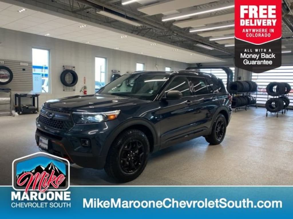 COME SEE THIS BEAUTIFUL 2023 Ford Explorer Timberline AT MIKE MAROONE CHEVROLET SOUTH 230 N ACADEMY BLVD COLORADO SPRINGS CO, 3 DAY 150 MILE MONEY BACK GUARANTEE**, FREE DELIVERY ANYWHERE IN COLORADO**, 60 DAY POWERTRAIN WARRANTY**, 3 FREE MONTHS XM RADIO (IF EQUIPPED)**, 3RD ROW SEATING**, 8 COLOR TOUCHSCREEN**, APPLE CARPLAY**, ANDROID AUTO**, AIR CONDITIONING**, ALL WHEEL DRIVE**, ALLOY WHEELS**, BLIND SPOT MONITOR**, BLUETOOTH - HANDS FREE**, FRESH OIL & FILTER CHANGE**, FRONT & REAR BRAKES**, FRONT AND REAR PARK ASSIST**, HEATED SEATS**, HEATED STEERING WHEEL**, LANE CHANGE ALERT WITH SIDE BLIND ZONE ALERT**, LANE KEEP ASSIST**, LEATHER SEATS**, PASSIVE ENTRY SYSTEM**, KEYLESS OPEN**, KEYLESS START**, KEYLESS ENTRY**, POWER SUNROOF**, POWER HEATED OUTSIDE MIRRORS**, CRUISE CONTROL**, POWER WINDOWS**, POWER LOCKS**, POWER REAR LIFTGATE**, POWER SEAT**, RAIN SENSING WINDSHIELD WIPERS**, REAR BACK UP CAMERA**, REAR CROSS TRAFFIC ALERT**, REMOTE VEHICLE START**, SERVICE RECORDS AVAILABLE**, STEERING WHEEL AUDIO CONTROLS**, TOW PACKAGE**. 4WD Certification Program Details: This 2023 Ford Explorer Timberline also comes with the FULL Mike Maroone 60-Day warranty. We will review the technician's vehicle inspection report with you before purchase. Our intention is to provide you a completely transparent buying experience. At Mike Maroone our used vehicles are Safety Checked, Warrantied, CARFAX, and if you don't like it ... Bring it back! All of our new and used vehicles come with the Mike Maroone Preferred Owner Advantages listed below: - MARKET BASED PRICING - 3 DAY/150 MILE MONEY BACK GUARANTEE - FREE LOANERS FOR SERVICE GUESTS WHO SET AN ONLINE APPOINTMENT - 12 MONTH/12K MILE SERVICE/COLLISION GUARANTEE - 60 DAY LIMITED POWERTRAIN PRE-OWNED VEHICLE WARRANTY - MILITARY DEPLOYMENT BUYBACK GUARANTEE - FREE DELIVERY ANYWHERE IN COLORADO For more information or vehicles like it, stop by Mike Maroone South today. We are just south of the Citadel Mall on the corner of Academy and Bijou. Odometer is 13676 miles below market average!