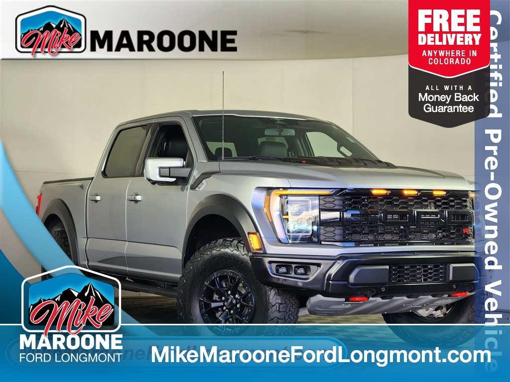 Clean CARFAX. FREE DELIVERY ANYWHERE IN COLORADO, GOLD CERTIFIED, Equipment Group 802A Raptor Series, Partitioned Lockable Storage, 37 Ã 12.5R17 BSW All-Terrain Tires, Unique 17" Forged Aluminum Wheels, 4.10 Electronic Lock Rear Axle, 7450 GVWR Package, Advanced Security Pack Removal, Moonroof & Tailgate Package, Twin Panel Moonroof, Power Tailgate, Tailgate Step, 50 State Emissions, Graphics Delete, Steering Wheel Heated Function Removal, Iconic Silver Metallic Exterior, Recaro Black Leather Seats.. Odometer is 7671 miles below market average! Silver Metallic 2023 Ford F-150 Raptor 4D SuperCrew 5.2L V8 10-Speed Automatic 4WD