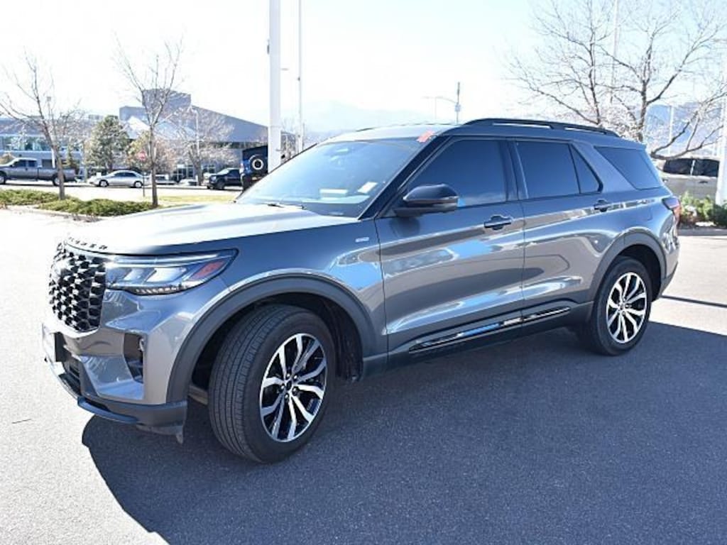 This 2025 Ford Explorer ST-Line, has a Carbonized Gray exterior and Onyx interior color with only 14,628 miles. Stock Number NA41937. You can connect with us by calling (719) 249-2703. One Owner! OTHER NOTABLE FEATURES AND OPTIONS YOU SHOULD KNOW ABOUT: Equipment Group 300A Standard Package10-Speed Automatic Transmission2.3L EcoBoost I-4 EngineHeated Unique Cloth Captain's Chairs3.58 Non-Limited Slip Rear AxleB&O Sound System by Bang and OlufsenAll-Weather Floor Liners with Front and Rear Carpet Floor Mats ($200 value) Safety and Security Hands-off cruise control - Set it and forget it. Road trips used to be stressful. Cruise control only managed speed, but not distance or safety. Now with hands-off cruise control simply set your desired speed and let sensor technology maintain a safe distance between you and surrounding vehicles with minimal steering input from you. It slows you down; speeds you up and even keeps you in your own lane. Meet your ultimate co-pilot with hands-off cruise control. Hands-off cruise control - Set it and forget it. Road trips used to be stressful. Cruise control only managed speed, but not distance or safety. Now with hands-off cruise control simply set your desired speed and let sensor technology maintain a safe distance between you and surrounding vehicles with minimal steering input from you. It slows you down; speeds you up and even keeps you in your own lane. Meet your ultimate co-pilot with hands-off cruise control. Hands-off cruise control with lane change - Set it and forget it. Road trips used to be stressful. Cruise control only managed speed, but not distance or safety. Now with hands-off cruise control with lane change simply set your desired speed and let sensor technology maintain a safe distance between you and surrounding vehicles with minimal steering input from you. It slows you down; speeds you up, and helps you make lane changes. Meet your ultimate co-pilot with hands-off cruise control with lane change. Forward collision mitigation - Forward thinking. You look away for just a second and suddenly the vehicle in front of you has stopped. That's when the forward collision mitigation system comes to life. When it senses an impending impact, it will activate a combination of features to help prevent or reduce the severity of an accident. Forward collision mitigation is always looking ahead.Technology and Telematics Apple CarPlay/Android Auto smart device wireless mirroring ENGINE: 2.3L ECOBOOST I-4, CARBONIZED GRAY METALLIC, ONYX, HEATED UNIQUE CLOTH CAPTAIN'S CHAIRS At Mike Maroone Chevrolet North, were here to Serve you! Our staff is 100% dedicated to customer satisfaction and we understand that you need clear, transparent information throughout the car buying process. With our live market pricing philosophy, we offer the right cars at the right price, and the transparency to back it up! FINANCING OPTIONS: Take advantage of our attractive low-rate financing options. Our access to various Credit Unions and National Banks can provide financing for most credit levels. We can tailor a finance package to fit your needs. To get started, complete our secure online credit application. We will review our technicians vehicle inspection report with you before purchase. Our intention is to provide you a completely transparent buying experience. At Mike Maroone our used vehicles are Safety Checked, Warrantied, CarFax, and if you dont like it ... Bring it back! For more information or vehicles like it, stop by Mike Maroone North today. We are just north of the Chapel Hills mall behind Walmart in the Chapel Hills Auto Mall.