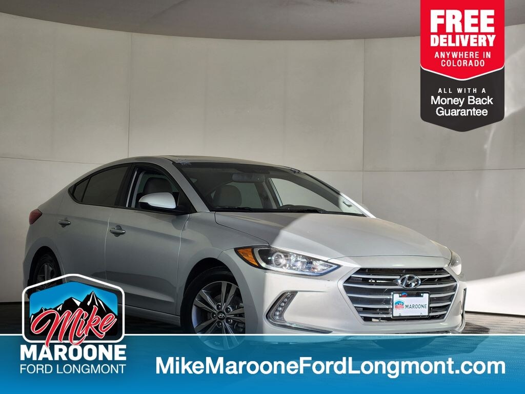 FREE DELIVERY ANYWHERE IN COLORADO, VEHICLE OVERVIEW Year / Model: 2018 Hyundai Elantra Trim: Value Edition Engine: 2.0L 4-Cylinder Transmission: 6-Speed Automatic with SHIFTRONIC Drivetrain: Front-Wheel Drive Exterior Color: Symphony Silver Interior Color: Gray, STANDARD FEATURES WARRANTY 5-Year / 60,000-Mile New Vehicle Warranty 10-Year / 100,000-Mile Powertrain Warranty 7-Year / Unlimited-Mile Anti-Perforation Warranty 5-Year / Unlimited-Mile Roadside Assistance, ADVANCED SAFETY TECHNOLOGY Electronic Stability Control (ESC) with Traction Control Anti-Lock Braking System (ABS) with Electronic Brake Force Distribution Front, Front Side & Side Curtain Airbags Drivers Knee Airbag Hill-Start Assist Control (HAC) Blind Spot Detection Rear Cross-Traffic Alert, POWERTRAIN & MECHANICAL 2.0L DOHC 4-Cylinder Engine Dual Continuously Variable Valve Timing Front-Wheel Drive 4-Wheel Disc Brakes, EXTERIOR 16" Alloy Wheels with 205/55R16 Tires Power Sunroof LED Daytime Running Lights Heated Outside Mirrors Door Handle Approach Lights, COMFORT & CONVENIENCE 7" Display Audio System with AM/FM/HD Radio & 6 Speakers Android Auto & Apple CarPlay SiriusXM Radio (Trial Subscription) Dual Automatic Temperature Control with Auto Defogger Bluetooth Hands-Free Phone System Steering Wheel Mounted Audio & Cruise Controls Leather-Wrapped Steering Wheel & Shift Knob Auto-Dimming Rearview Mirror with HomeLink Illuminated Vanity Mirrors Center Console Mounted Rear Cupholders Heated Front Seats Proximity Key with Push Button Start Hands-Free Smart Trunk Rearview Camera with Dynamic Guidelines Temporary Compact Spare Tire, ADDED FEATURES / ACCESSORIES Carpeted Floor Mats Cargo Tray Mud Guards. Odometer is 7774 miles below market average! Symphony Silver 2018 Hyundai Elantra Value Edition 4D Sedan 2.0L 4-Cylinder DOHC 16V 6-Speed Automatic with Shiftronic FWD