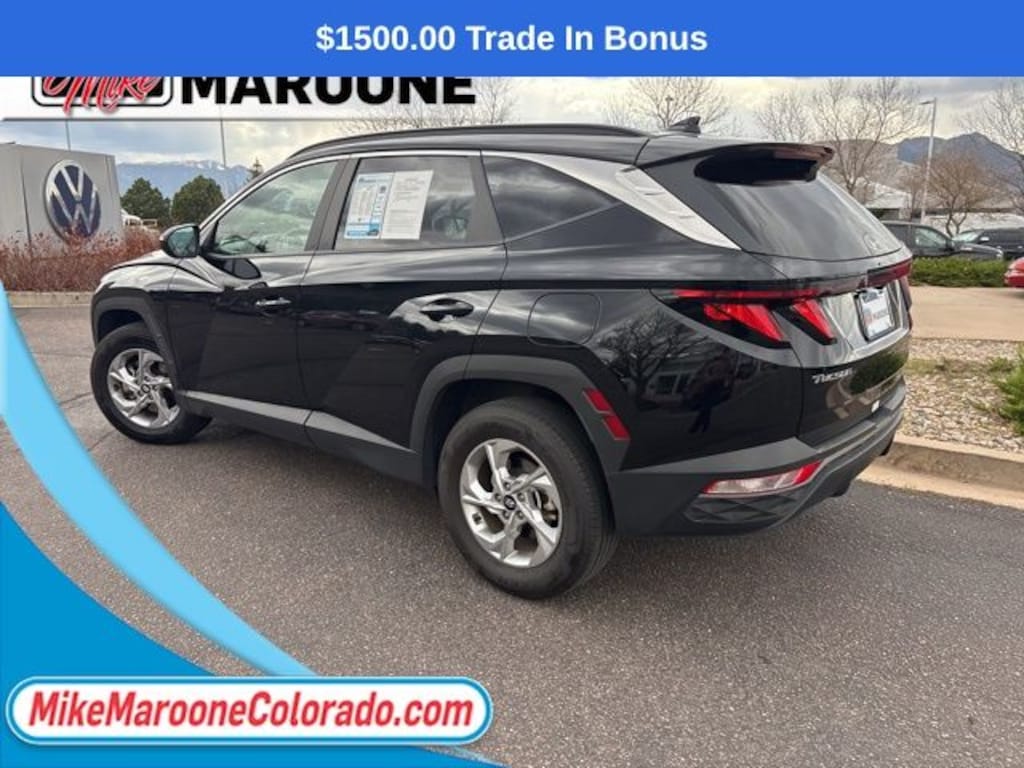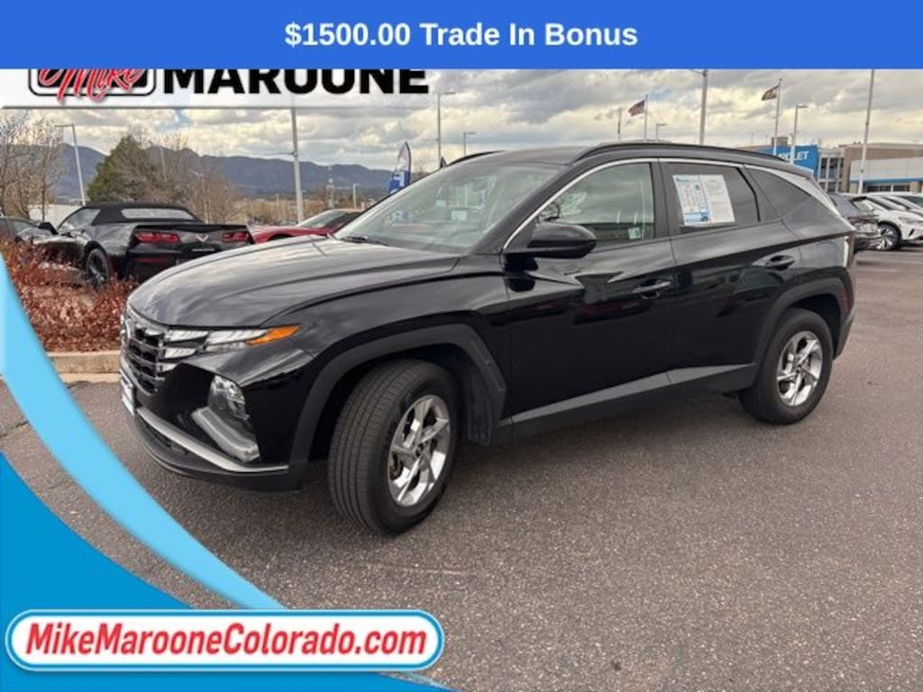 This Tucson also comes with the FULL Mike Maroone a 60-Day 3000 Mileage Powertrain Warranty. We will review the technicianâs vehicle inspection report with you before purchase. Our intention is to provide you a completely transparent buying experiance. At Mike Maroone our used vehicles are Safety Checked, Warrantied, CarFax, and if you donât like it ... Bring it back! For more information or vehicles like it, stop by Mike Maroone North today. We are just north of the Chapel Hills mall behind Walmart in the Chapel Hills Auto Mall.
