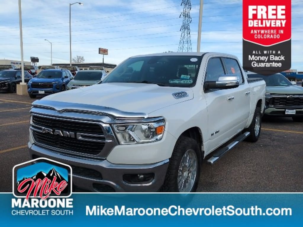 COME SEE THIS BEAUTIFUL 2019 Ram 1500 Big Horn/Lone Star AT MIKE MAROONE CHEVROLET SOUTH 230 N ACADEMY BLVD COLORADO SPRINGS CO, 3 DAY 150 MILE MONEY BACK GUARANTEE**, FREE DELIVERY ANYWHERE IN COLORADO**, 60 DAY POWERTRAIN WARRANTY**, 4 WHEEL DRIVE**, 5.7L HEMI V8**, 8 COLOR TOUCHSCREEN**, APPLE CARPLAY**, ANDROID AUTO**, AIR CONDITIONING**, ALLOY WHEELS**, BLUETOOTH - HANDS FREE**, FRESH OIL & FILTER CHANGE**, FRONT & REAR BRAKES**, MP3- USB- AUX PORT**, PASSIVE ENTRY SYSTEM**, KEYLESS OPEN**, KEYLESS START**, KEYLESS ENTRY**, POWER HEATED OUTSIDE MIRRORS**, CRUISE CONTROL**, POWER WINDOWS**, POWER LOCKS**, POWER SEAT**, REAR BACK UP CAMERA**, REAR CROSS TRAFFIC ALERT**, REMOTE VEHICLE START**, RUNNING BOARDS**, SERVICE RECORDS AVAILABLE**, STEERING WHEEL AUDIO CONTROLS**, TOW PACKAGE**, BEDLINER**. 4WD Certification Program Details: This 2019 Ram 1500 Big Horn/Lone Star also comes with the FULL Mike Maroone 60-Day warranty. We will review the technician's vehicle inspection report with you before purchase. Our intention is to provide you a completely transparent buying experience. At Mike Maroone our used vehicles are Safety Checked, Warrantied, CARFAX, and if you don't like it ... Bring it back! All of our new and used vehicles come with the Mike Maroone Preferred Owner Advantages listed below: - MARKET BASED PRICING - 3 DAY/150 MILE MONEY BACK GUARANTEE - FREE LOANERS FOR SERVICE GUESTS WHO SET AN ONLINE APPOINTMENT - 12 MONTH/12K MILE SERVICE/COLLISION GUARANTEE - 60 DAY LIMITED POWERTRAIN PRE-OWNED VEHICLE WARRANTY - MILITARY DEPLOYMENT BUYBACK GUARANTEE - FREE DELIVERY ANYWHERE IN COLORADO For more information or vehicles like it, stop by Mike Maroone South today. We are just south of the Citadel Mall on the corner of Academy and Bijou.