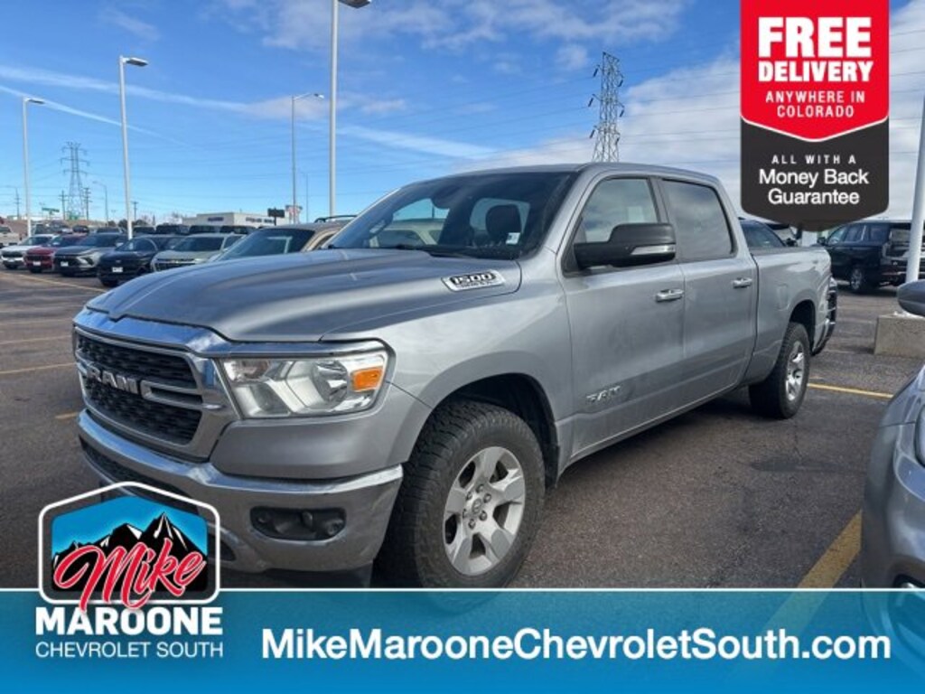 COME SEE THIS BEAUTIFUL 2022 Ram 1500 Big Horn AT MIKE MAROONE CHEVROLET SOUTH 230 N ACADEMY BLVD COLORADO SPRINGS CO, 3 DAY 150 MILE MONEY BACK GUARANTEE**, FREE DELIVERY ANYWHERE IN COLORADO**, 60 DAY POWERTRAIN WARRANTY**, CERTIFIED 1 OWNER VEHICLE**, CLEAN CARFAX - NO ACCIDENTS REPORTED**, 3 FREE MONTHS XM RADIO (IF EQUIPPED)**, 4 WHEEL DRIVE**, 5.7L HEMI V8**, 8 COLOR TOUCHSCREEN**, APPLE CARPLAY**, ANDROID AUTO**, AIR CONDITIONING**, ALLOY WHEELS**, AUTO LOCKING REAR DIFFERENTIAL**, BLUETOOTH - HANDS FREE**, FRESH OIL & FILTER CHANGE**, FRONT & REAR BRAKES**, HEATED SEATS**, MP3- USB- AUX PORT**, PASSIVE ENTRY SYSTEM**, KEYLESS OPEN**, KEYLESS START**, KEYLESS ENTRY**, POWER HEATED OUTSIDE MIRRORS**, CRUISE CONTROL**, POWER WINDOWS**, POWER LOCKS**, POWER SEAT**, REAR BACK UP CAMERA**, REAR CROSS TRAFFIC ALERT**, REMOTE VEHICLE START**, RUNNING BOARDS**, SERVICE RECORDS AVAILABLE**, STEERING WHEEL AUDIO CONTROLS**, TOW PACKAGE**, TRAILERING EQUIPMENT**, BEDLINER**. 4WD Certification Program Details: This 2022 Ram 1500 Big Horn also comes with the FULL Mike Maroone 60-Day warranty. We will review the technician's vehicle inspection report with you before purchase. Our intention is to provide you a completely transparent buying experience. At Mike Maroone our used vehicles are Safety Checked, Warrantied, CARFAX, and if you don't like it ... Bring it back! All of our new and used vehicles come with the Mike Maroone Preferred Owner Advantages listed below: - MARKET BASED PRICING - 3 DAY/150 MILE MONEY BACK GUARANTEE - FREE LOANERS FOR SERVICE GUESTS WHO SET AN ONLINE APPOINTMENT - 12 MONTH/12K MILE SERVICE/COLLISION GUARANTEE - 60 DAY LIMITED POWERTRAIN PRE-OWNED VEHICLE WARRANTY - MILITARY DEPLOYMENT BUYBACK GUARANTEE - FREE DELIVERY ANYWHERE IN COLORADO For more information or vehicles like it, stop by Mike Maroone South today. We are just south of the Citadel Mall on the corner of Academy and Bijou.