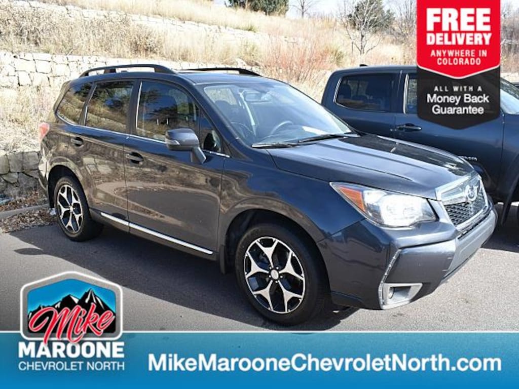 This 2016 Subaru Forester 2.0XT Touring, has a Dark Gray Metallic exterior and Black interior color with only 104,789 miles. Stock Number PN459991. You can connect with us by calling (719) 249-2703. No Accidents! OTHER NOTABLE FEATURES AND OPTIONS YOU SHOULD KNOW ABOUT: EyeSight and Navigation System ($1,395 value)Subaru Starlink 7.0" Multimedia Navigation System RadioEyeSight SystemProtection Package #2 ($601 value)Rear Seat Back ProtectorAll Weather Floor MatsLuggage Compartment CoverRear Bumper CoverSplash Guard Kit Convenience Distance pacing cruise control - Set it and forget it. Road trips used to be stressful. Cruise control only managed speed, but not distance or safety. Now, with Distance pacing cruise control, simply set your desired speed and let sensor technology maintain a safe distance between you and the vehicle ahead. Distance pacing cruise control; your ultimate co-pilot.Safety and Security Forward collision mitigation - Forward thinking. You look away for just a second and suddenly the vehicle in front of you has stopped. That's when the forward collision mitigation system comes to life. When it senses an impending impact, it will activate a combination of features to help prevent or reduce the severity of an accident. Forward collision mitigation is always looking ahead. Rear camera - Watching your back! The rear camera helps you see obstacles and hazards you otherwise couldn't by showing enhanced images of what is behind you. The rear camera is an extra set of eyes that's both convenient and safe. Brake assist - Stop right there. Something jumps out into the middle of the road and you need to stop now! With brake assist, you will. It uses the speed of the brake pedals travel to sense panic braking, then applies all available power to boost your stopping power. Brake assist can stop the accident before it is one. Predictive brake assist - Be prepared for your big brake. Predictive brake assist monitors the available distance in front of you compared to your vehicles speed. If your speed exceeds the required distance to stop short of a collision, it readies your brakes to apply maximum stopping force when you use them. Predictive brake assist helps see to it that you stop. EYESIGHT & NAVIGATION SYSTEM, DARK GRAY METALLIC, BLACK, PERFORATED LEATHER-TRIMMED UPHOLSTERY, PROTECTION PACKAGE #2, INT. & EXT. AUTO DIM MIRROR W/APPROACH LIGHTING, REMOTE ENGINE STARTER - PUSH BUTTON, AERO CROSS BAR SET At Mike Maroone Chevrolet North, were here to Serve you! Our staff is 100% dedicated to customer satisfaction and we understand that you need clear, transparent information throughout the car buying process. With our live market pricing philosophy, we offer the right cars at the right price, and the transparency to back it up! FINANCING OPTIONS: Take advantage of our attractive low-rate financing options. Our access to various Credit Unions and National Banks can provide financing for most credit levels. We can tailor a finance package to fit your needs. To get started, complete our secure online credit application. We will review our technicians vehicle inspection report with you before purchase. Our intention is to provide you a completely transparent buying experience. At Mike Maroone our used vehicles are Safety Checked, Warrantied, CarFax, and if you dont like it ... Bring it back! For more information or vehicles like it, stop by Mike Maroone North today. We are just north of the Chapel Hills mall behind Walmart in the Chapel Hills Auto Mall.