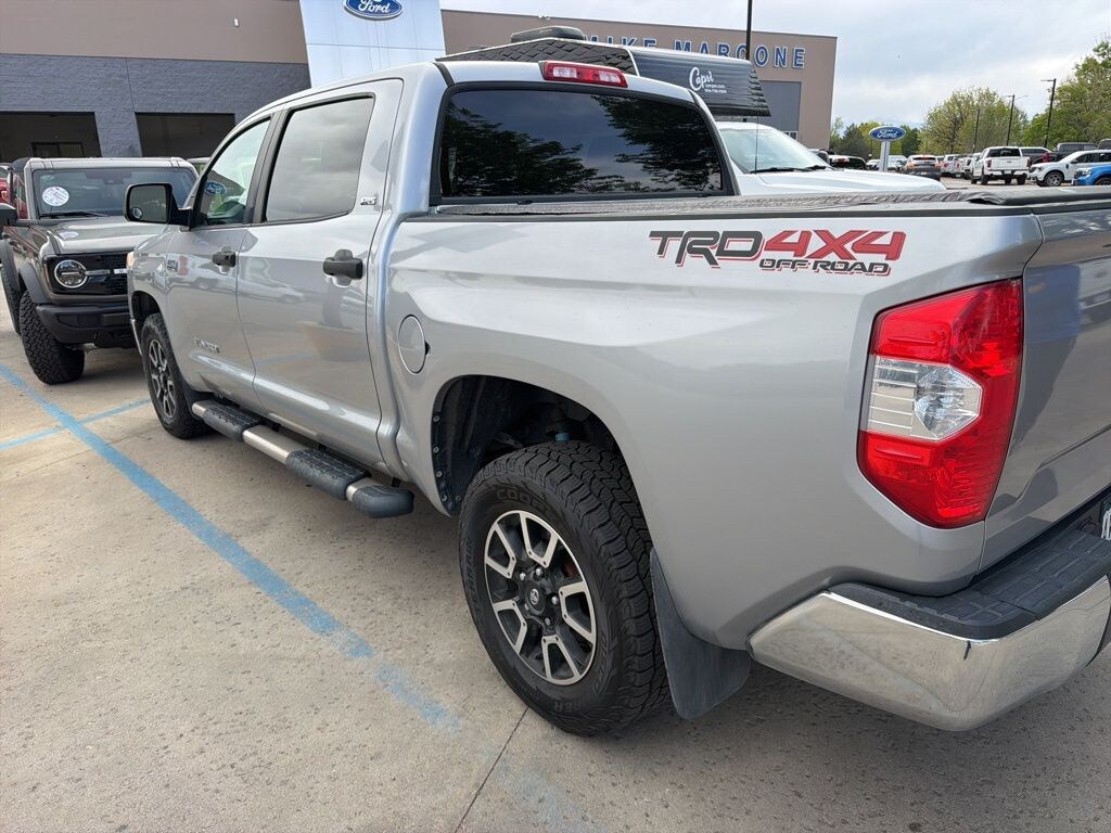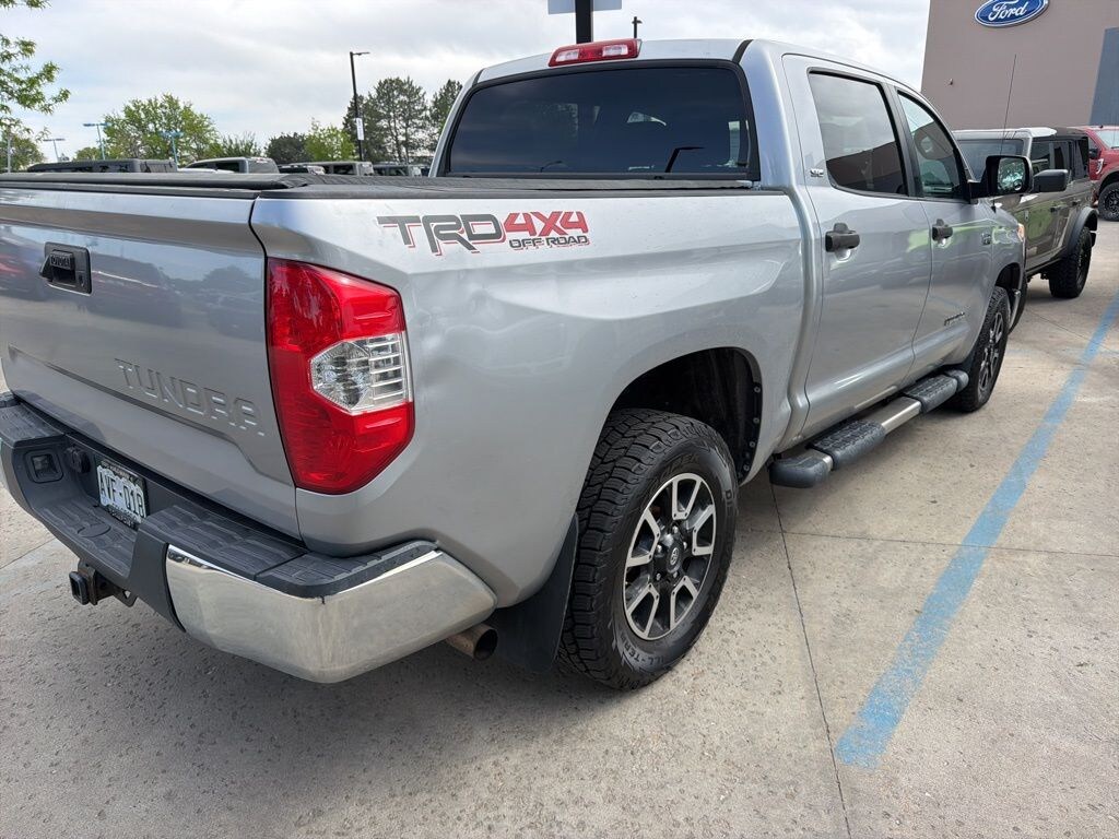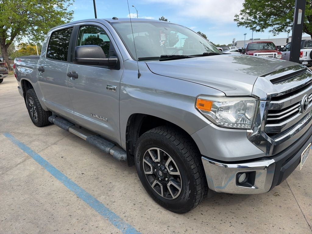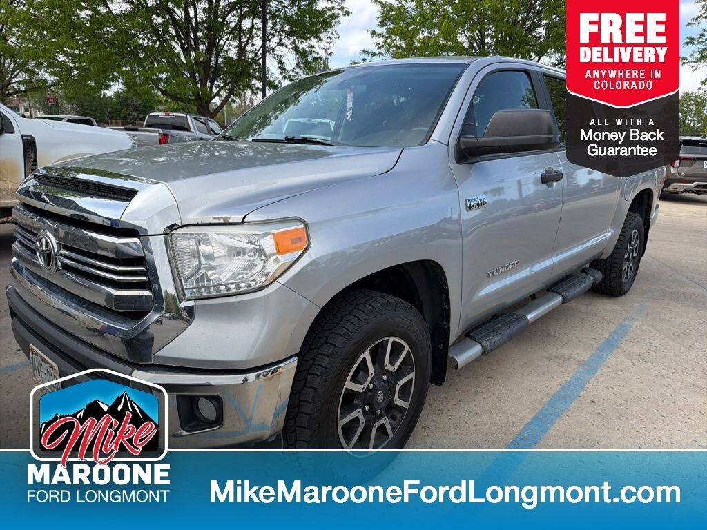 Clean CARFAX. FREE DELIVERY ANYWHERE IN COLORADO, 5.7L i-Force V8 engine, 6-speed automatic transmission with overdrive, SR5 trim, rear-wheel drive, TRD Off-Road Package, Bilstein shocks, engine and fuel tank skid plates, TRD off-road graphics, 18-inch split-spoke TRD off-road alloy wheels, all-terrain tires, deck rail system, fabric-trimmed front bench seat, 3-passenger front seating, Entune audio system with AM/FM/HD radio and CD player, Bluetooth connectivity, SiriusXM satellite radio, USB and auxiliary inputs, power windows and locks, keyless entry, cruise control, air conditioning, carpet floor mats and door sill protector, wheel locks, ABS brakes, Electronic Stability Control, Heated door mirrors, Illuminated entry, Low tire pressure warning, Remote keyless entry, Traction control. Silver 2016 Toyota Tundra SR5 4D CrewMax 5.7L 8-Cylinder SMPI DOHC 6-Speed Automatic Electronic with Overdrive 4WD