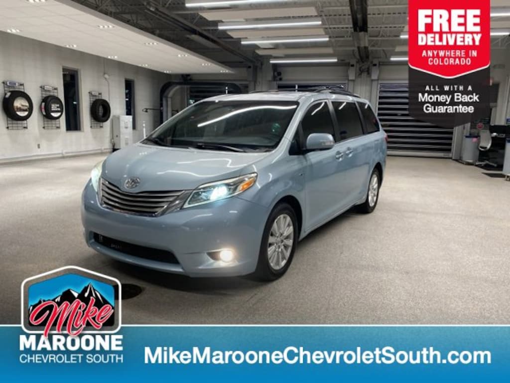 COME SEE THIS BEAUTIFUL 2017 Toyota Sienna Limited AT MIKE MAROONE CHEVROLET SOUTH 230 N ACADEMY BLVD COLORADO SPRINGS CO, 3 DAY 150 MILE MONEY BACK GUARANTEE**, FREE DELIVERY ANYWHERE IN COLORADO**, 60 DAY POWERTRAIN WARRANTY**, 3 FREE MONTHS XM RADIO (IF EQUIPPED)**, 3RD ROW SEATING**, AIR CONDITIONING**, ALL WHEEL DRIVE**, ALLOY WHEELS**, BLUETOOTH - HANDS FREE**, FRESH OIL & FILTER CHANGE**, FRONT & REAR BRAKES**, HEATED SEATS**, LEATHER SEATS**, PASSIVE ENTRY SYSTEM**, KEYLESS OPEN**, KEYLESS START**, KEYLESS ENTRY**, POWER HEATED OUTSIDE MIRRORS**, CRUISE CONTROL**, POWER WINDOWS**, POWER LOCKS**, POWER SEAT**, REAR BACK UP CAMERA**, REAR CROSS TRAFFIC ALERT**, SERVICE RECORDS AVAILABLE**, STEERING WHEEL AUDIO CONTROLS**. AWD Certification Program Details: This 2017 Toyota Sienna Limited also comes with the FULL Mike Maroone 60-Day warranty. We will review the technician's vehicle inspection report with you before purchase. Our intention is to provide you a completely transparent buying experience. At Mike Maroone our used vehicles are Safety Checked, Warrantied, CARFAX, and if you don't like it ... Bring it back! All of our new and used vehicles come with the Mike Maroone Preferred Owner Advantages listed below: - MARKET BASED PRICING - 3 DAY/150 MILE MONEY BACK GUARANTEE - FREE LOANERS FOR SERVICE GUESTS WHO SET AN ONLINE APPOINTMENT - 12 MONTH/12K MILE SERVICE/COLLISION GUARANTEE - 60 DAY LIMITED POWERTRAIN PRE-OWNED VEHICLE WARRANTY - MILITARY DEPLOYMENT BUYBACK GUARANTEE - FREE DELIVERY ANYWHERE IN COLORADO For more information or vehicles like it, stop by Mike Maroone South today. We are just south of the Citadel Mall on the corner of Academy and Bijou.