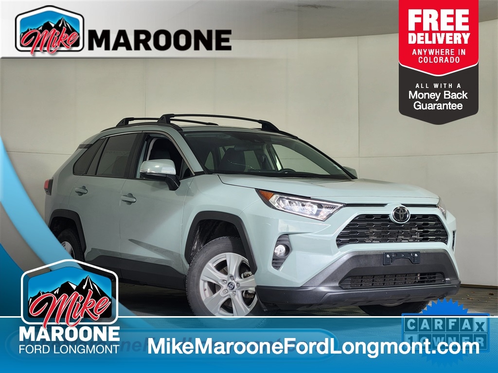 Recent Arrival at Mike Maroone Ford! Clean CARFAX. CARFAX One-Owner. FREE DELIVERY ANYWHERE IN COLORADO, 2021 Toyota RAV4 XLE AWD, Exceptional Fuel Economy & Legendary Toyota Reliability!, Exterior: Lunar Rock Engine: 2.5L Dynamic Force 4-Cylinder Transmission: 8-Speed Automatic Drivetrain: AWD, This 2021 Toyota RAV4 XLE AWD is the perfect compact SUV for the Colorado lifestyle, offering a fantastic combination of all-weather capability, superb fuel efficiency, and Toyotas unmatched reputation for dependability. The XLE trim adds desirable comfort and convenience features that make every drive better., Key Features & Efficiency: Outstanding Fuel Economy: The 2.5L Dynamic Force engine is incredibly efficient, delivering an impressive 29 MPG Combined (27 City / 33 Highway), saving you money on every tank. All-Weather Confidence: Equipped with Toyotas reliable All-Wheel Drive (AWD) system, providing stability and traction for snowy roads and light trail adventures. Toyota Safety Sense 2.0 (TSS 2.0): Comes standard with Toyotas comprehensive safety suite, including Pre-Collision System with Pedestrian Detection, Lane Departure Alert with Steering Assist, Full-Speed Range Dynamic Radar Cruise Control, and Road Sign Assist. XLE Comfort Upgrades: Includes premium amenities over the base model, such as Heated and Ventilated Front Seats, Dual-Zone Automatic Climate Control, and the Blind Spot Monitor (BSM) with Rear Cross-Traffic Alert (RCTA). Modern Infotainment: Features the Toyota Touchscreen system with Apple CarPlay and Android Auto integration for seamless smartphone connectivity. This RAV4 XLE is the smart choice for anyone seeking a modern, economical, and feature-packed SUV. It's ready for commuting, road trips, and everything in between! Drive home the reliable choice! Contact Mike Maroone Ford Longmont for a test drive today!. Odometer is 1857 miles below market average! Green 2020 Toyota RAV4 XLE 4D Sport Utility 2.5L 4-Cylinder DOHC Dual VVT-i 8-Speed Automatic AWD